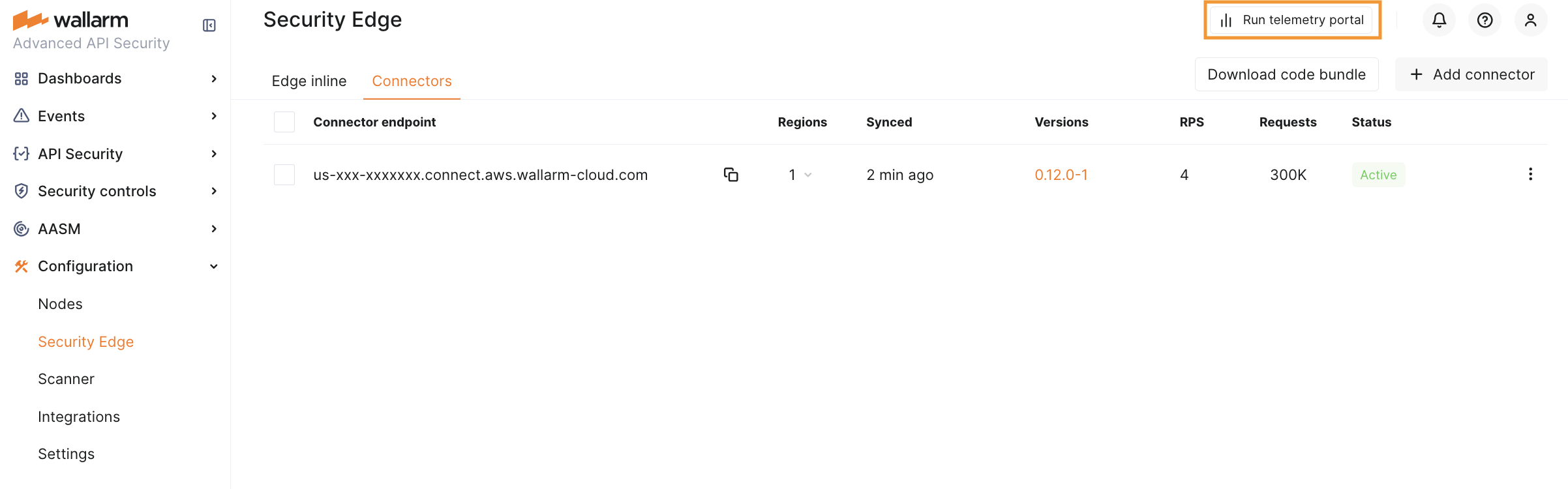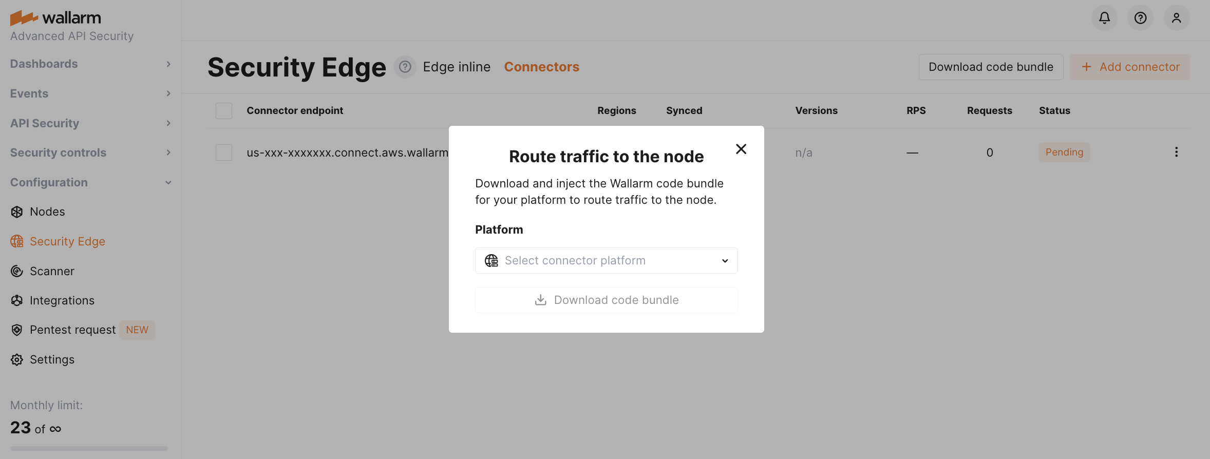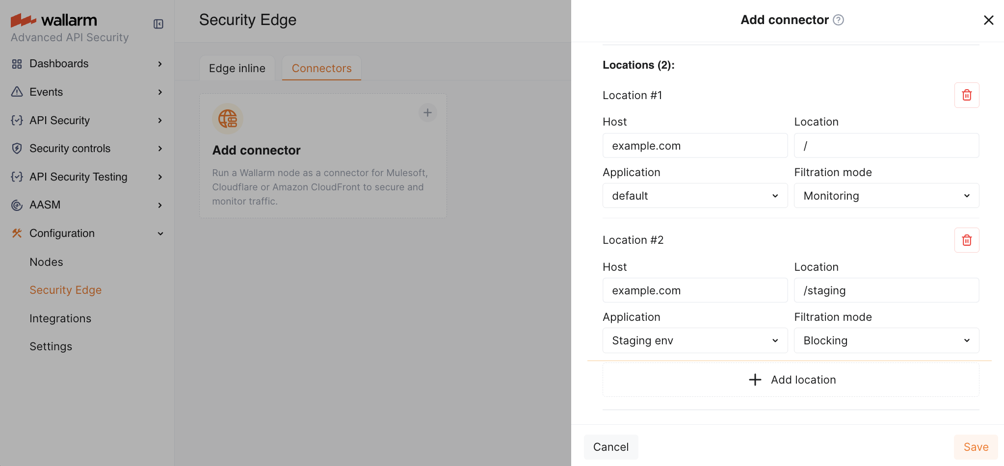 Proceed to Wallarm Console โ Security Edge โ Connectors โ Add connector.