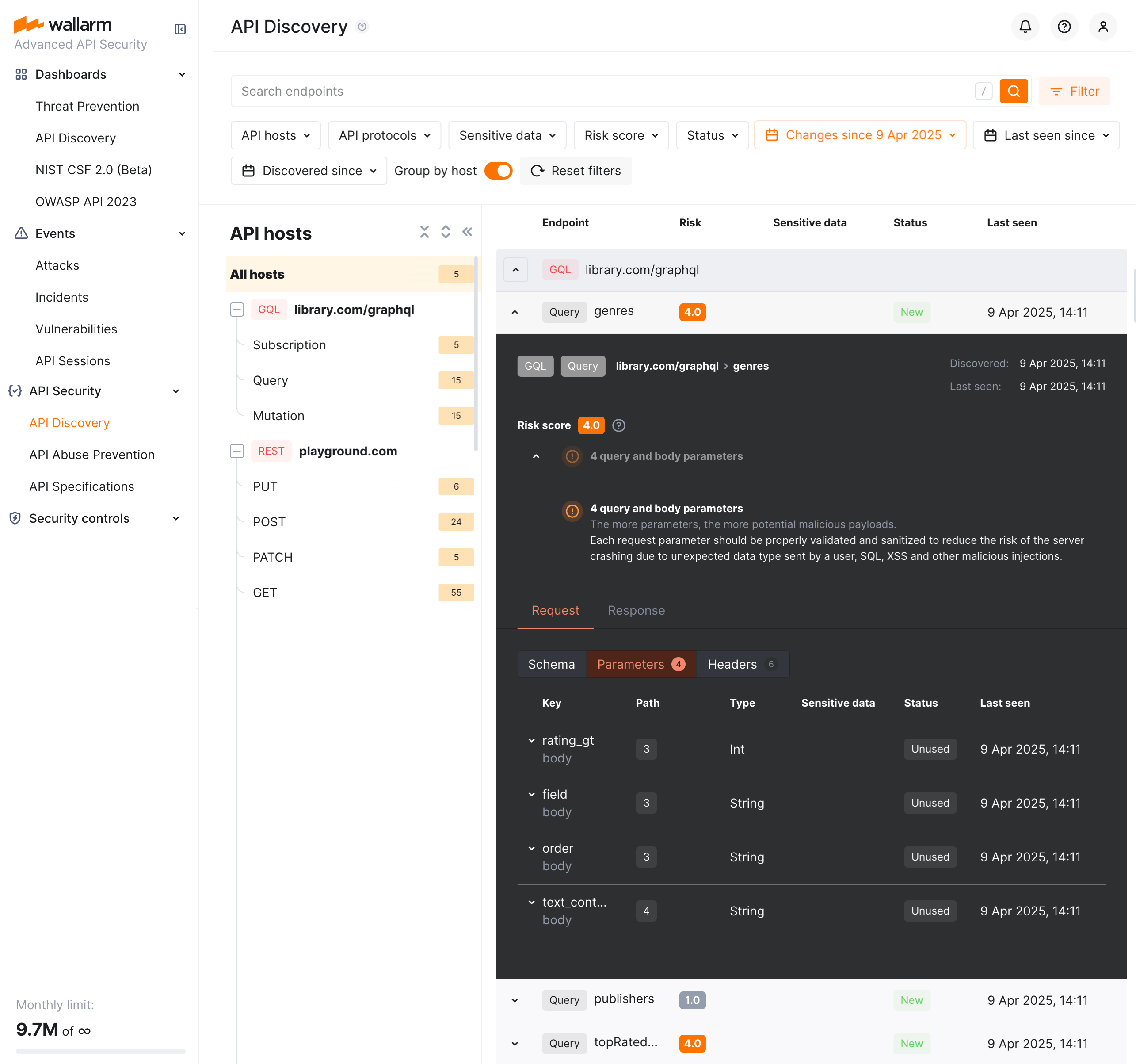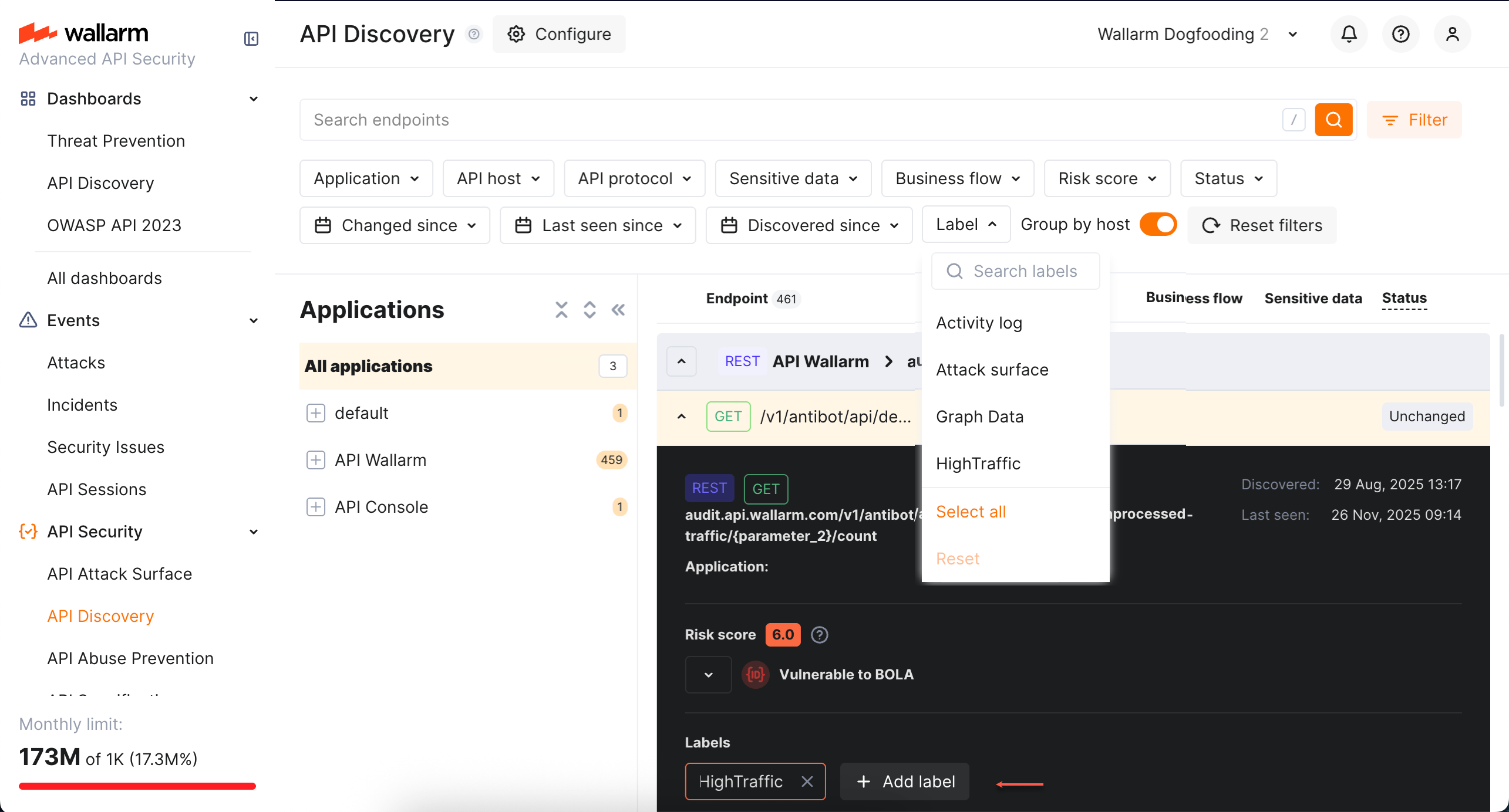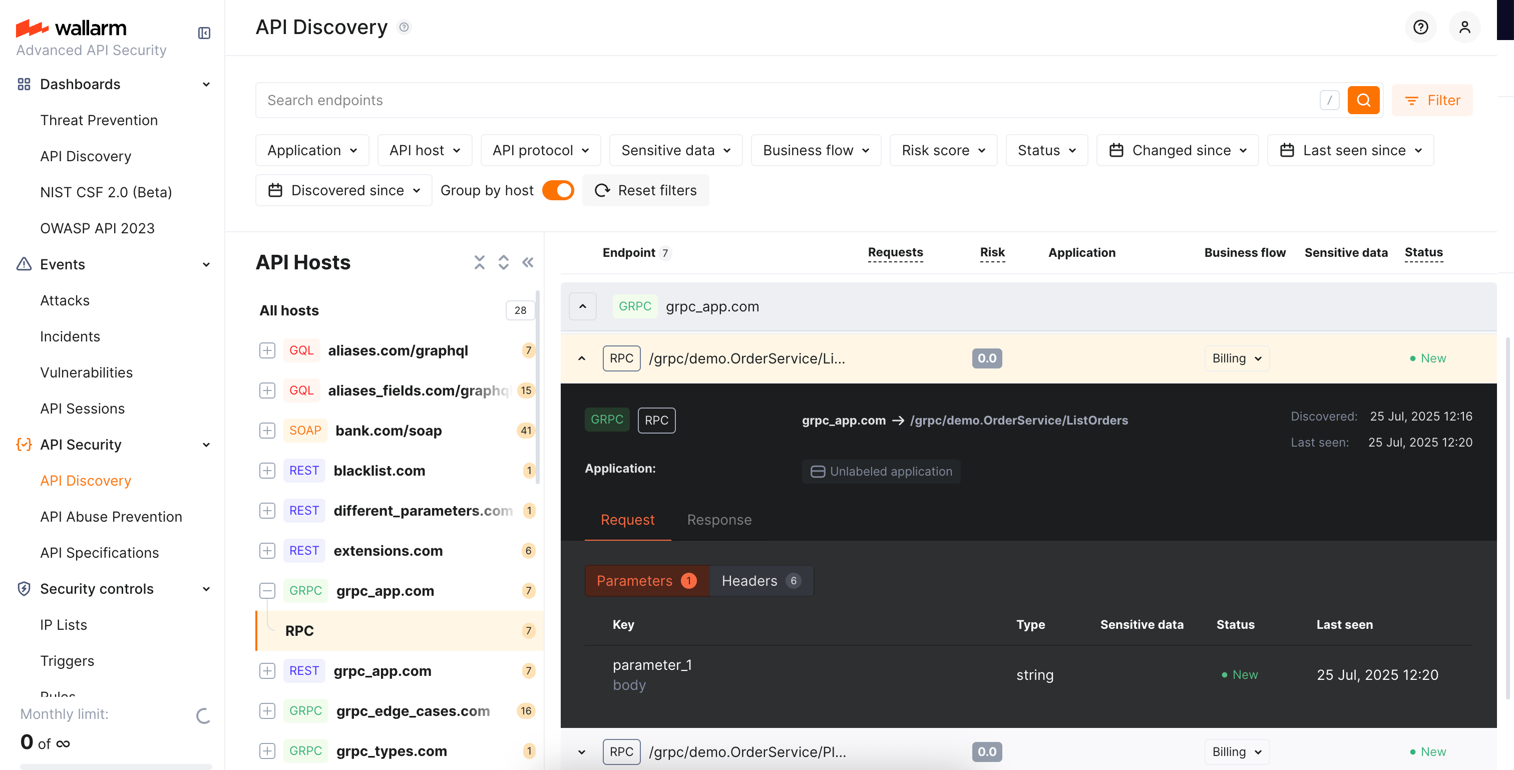 Explore your discovered API inventory using the API Discovery section in the US or EU Cloud.