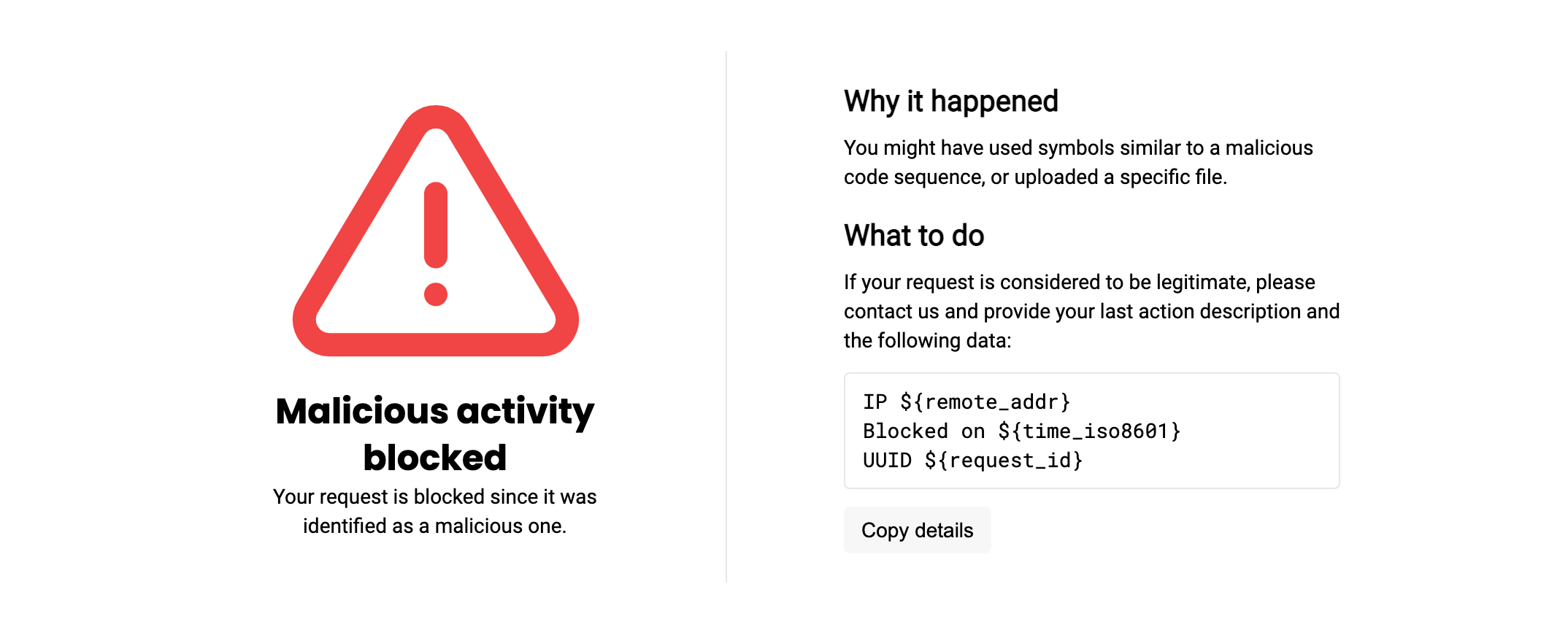 The Wallarm-provided error page returned with HTTP 403 responses looks as follows: