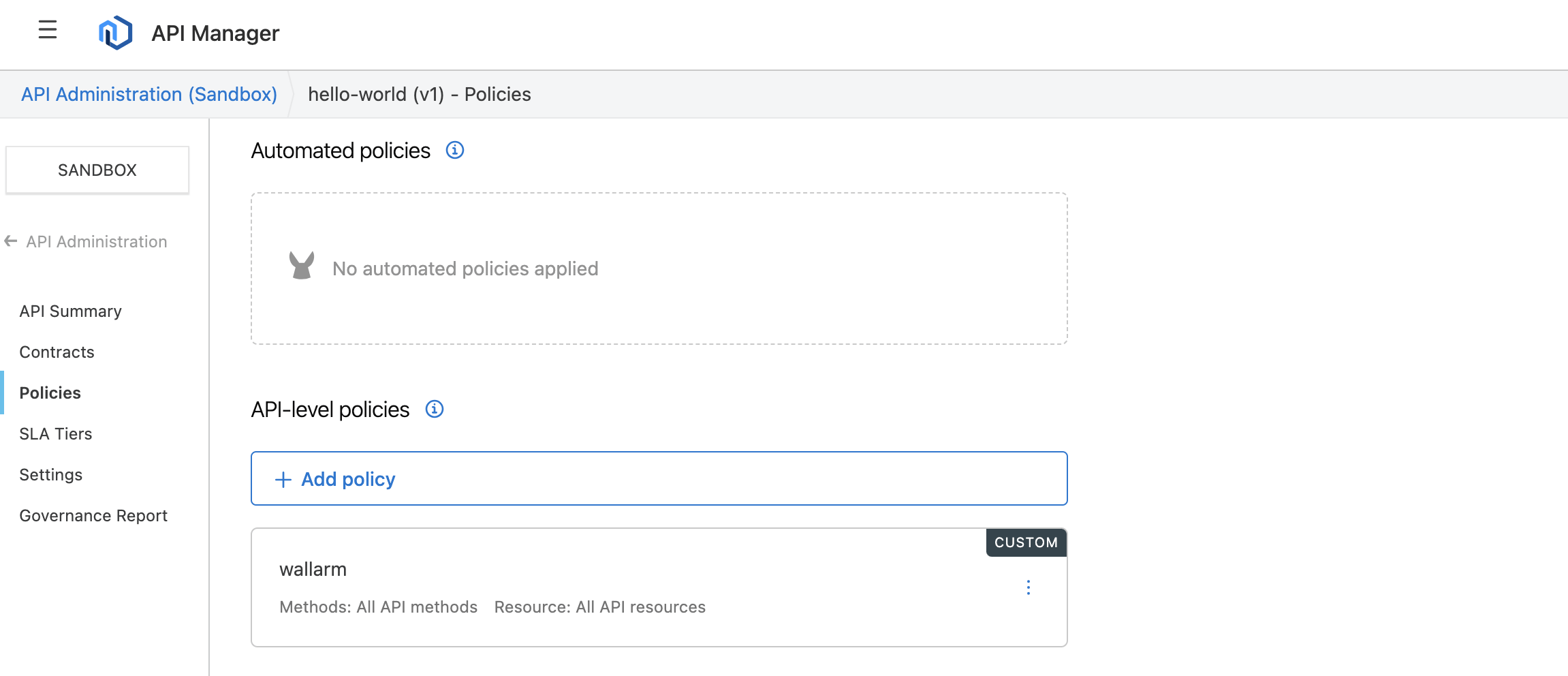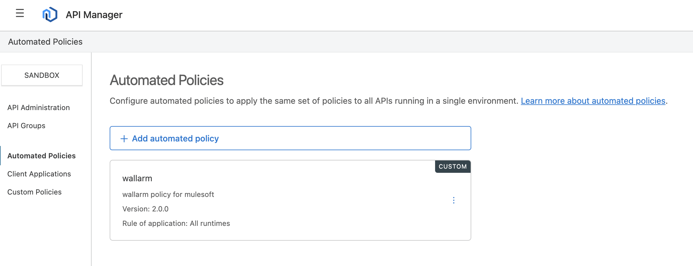 Entre em contato com support@wallarm.com para obter a política Wallarm MuleSoft.