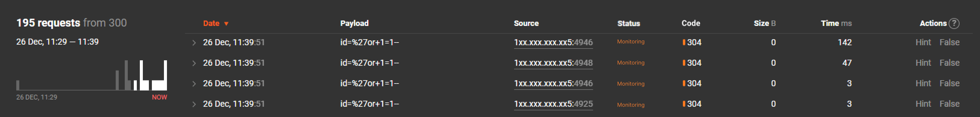 Ao clicar no número, todas as solicitações no ataque selecionado serão exibidas.